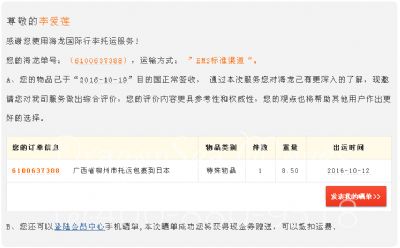 166450 顾客使用海龙国际托运服务