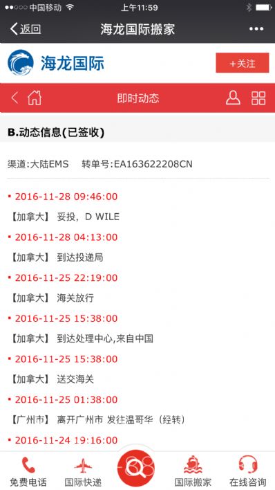 166450 顾客使用海龙国际托运服务
