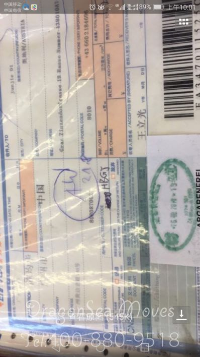 166450 顾客使用海龙国际托运服务