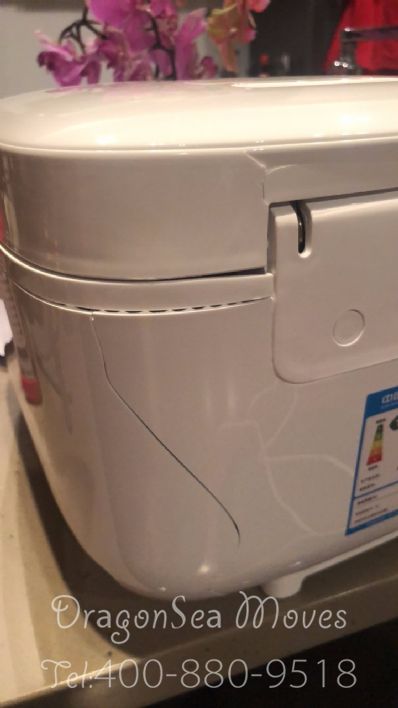 几件东西都摔坏了 运过去也用不了 我们包装4/5层气泡塑料袋也能把东西摔成这样, 电饭锅是 外面裂开了, 里面的锅也摔变形了.