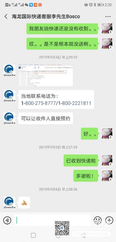 166450 顾客使用海龙国际托运服务