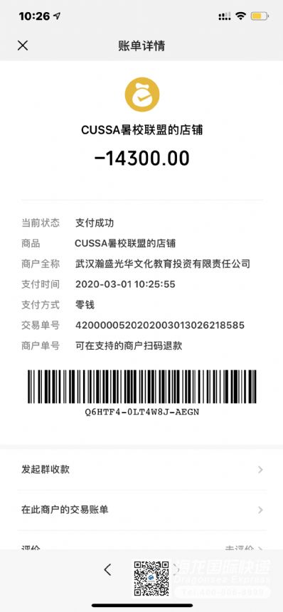 166450 顾客使用海龙国际托运服务