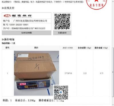 166450 顾客使用海龙国际托运服务