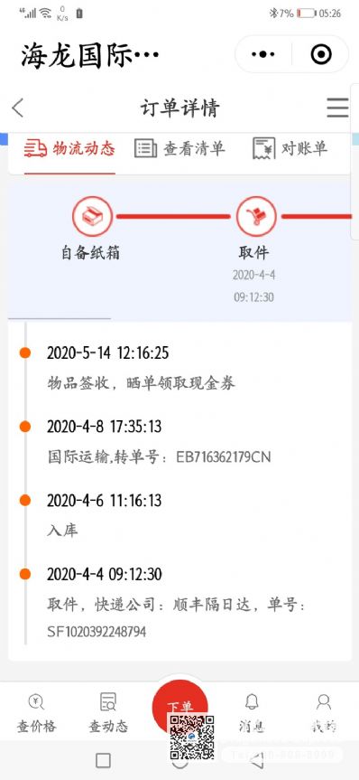 166450 顾客使用海龙国际托运服务