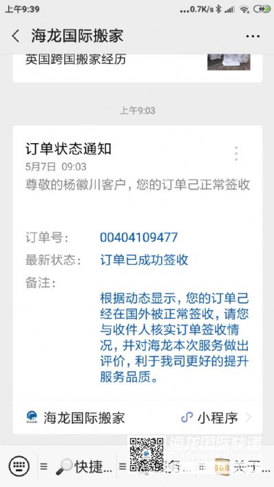 166450 顾客使用海龙国际托运服务