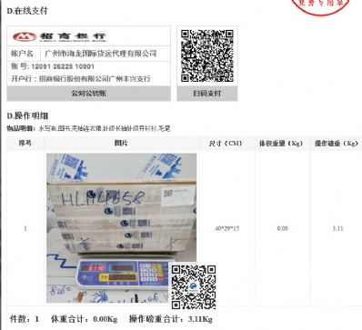 166450 顾客使用海龙国际托运服务