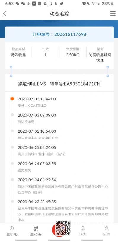 166450 顾客使用海龙国际托运服务