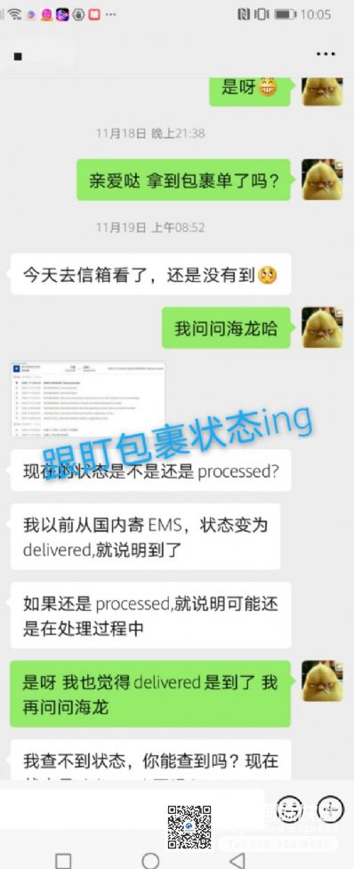 疫情期间国际航班时效不稳定,不停的请海龙的客服黄小姐帮忙查包裹状态,黄小姐特别耐心,今天包裹终于安抵收件人手中。非常感谢!