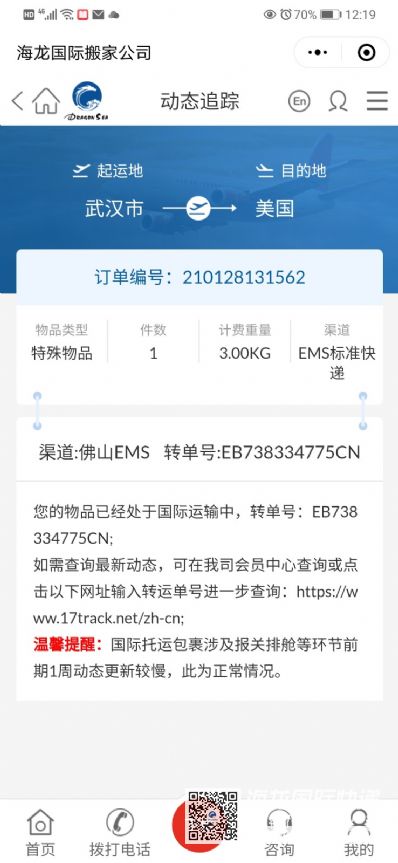166450 顾客使用海龙国际托运服务