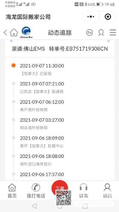 166450 顾客使用海龙国际托运服务