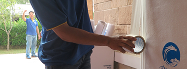 物品开始包装前,对室内的门框、地面与走廊等关键位置进行防护作业