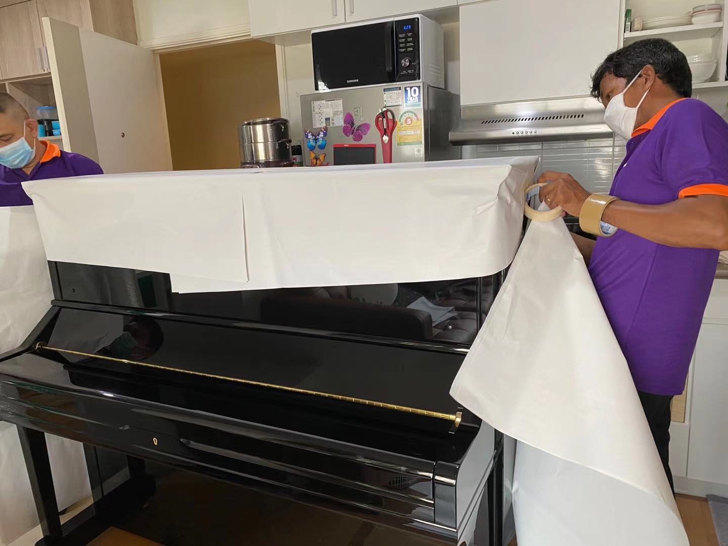 因为有立式钢琴,之前在搜索国际搬家公司的时候一直都很谨慎,担心找了不专业的公司到时就麻烦了,毕竟钢琴不同于衣服这些生活物品,后面了解海龙是一家国内外口碑都不错的公司,他们也有服务过泰国的订单,也搬运过钢琴,看中的是他们的服务经验,打包当天来了四个工人,看得出对钢琴的搬运技巧是挺娴熟的,比较专业。