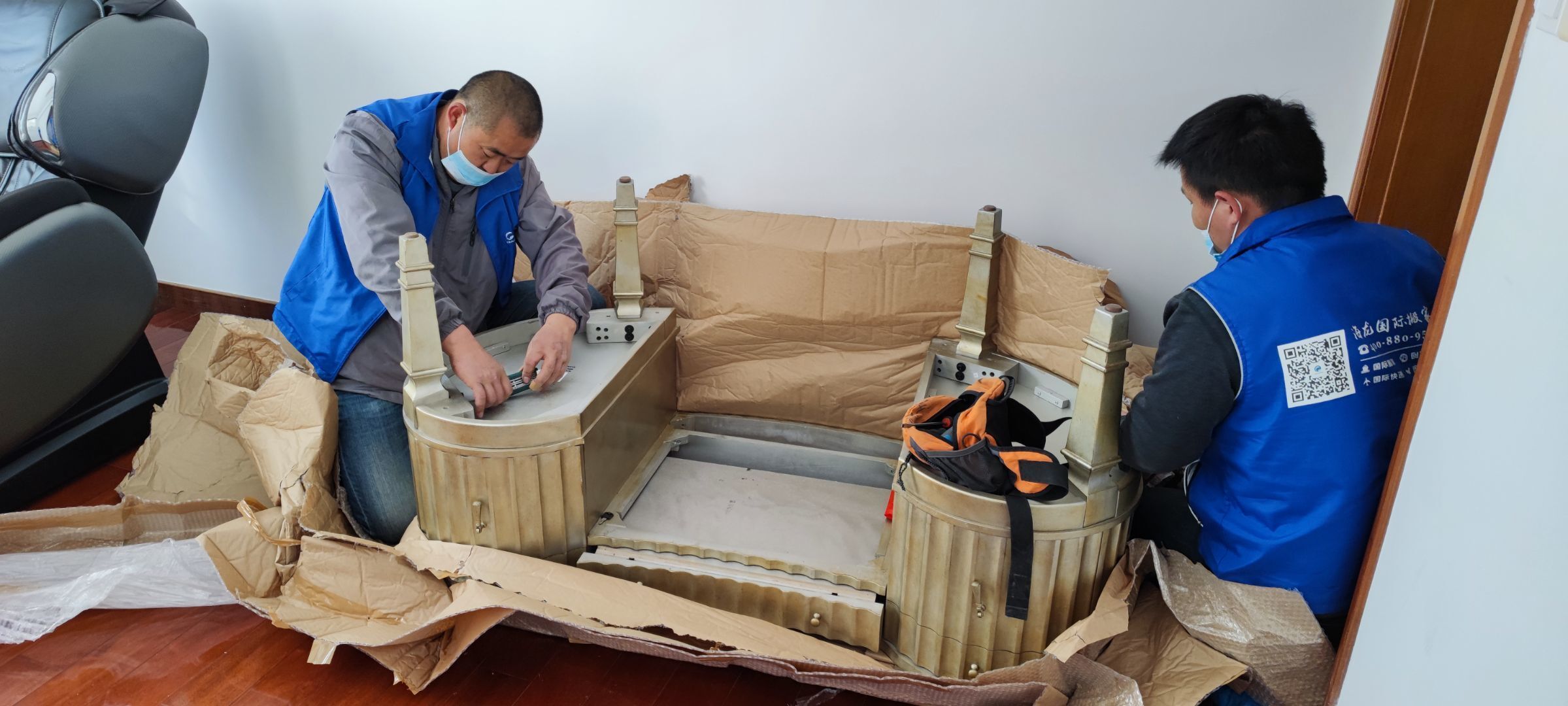 今天海龙的师傅给我们送来了在美国海运回来的家具和生活用品,真的非常感谢。工人大哥热情有礼貌,进屋前穿上鞋套,怕踩脏家里。我家有两层,要爬楼梯,按摩椅比较重,也直接就给抬上去了,动作小心又快。基本上东西全部都是要搬上二楼,一件件点号完再帮我搬上去,东西基本上都没事,全部搬好后,还把那些家具拆掉的包装帮忙带走,特别好。给了两百红包也坚决不收,这么好的搬家公司哪里找,好评必须安排上!谢谢海龙公司提供的优质服务,祝生意兴隆,蒸蒸日上!