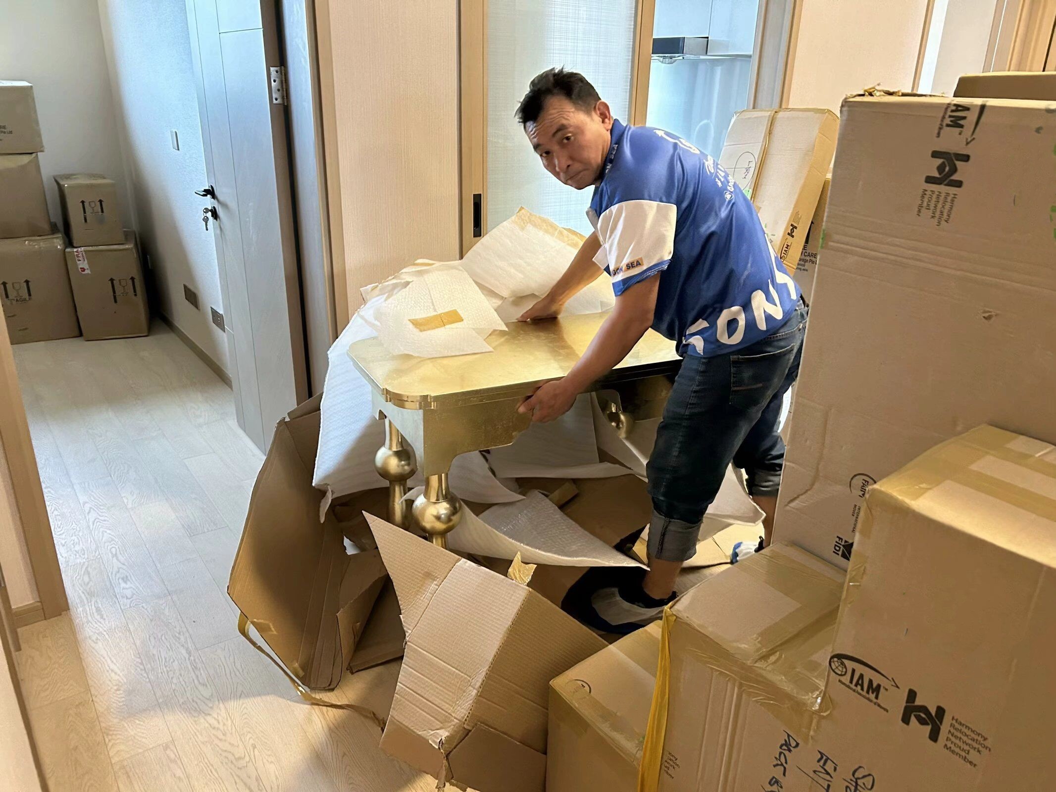 首先得说一下,定制化搬家,确实是很大程度上方便了自己的行程安排! 因为本次搬家,主要是把一些短期不用的家具行李运回国,但是自己还是要在新加坡继续工作的。 海龙这边,为了配合我的打包时间,清关时间,以及说尽可能的避免额外的费用,都做个各种协调,点赞。 当然,除去这些,物品的打包也非常的专业,收到物品也没有出现任何问题,工人会拆包组装还原家具,清理走垃圾,衣服行李是自己拆自己摆,这个能理解,毕竟师傅也不清楚我们的个人摆放习惯之类的。总体来说,很满意!