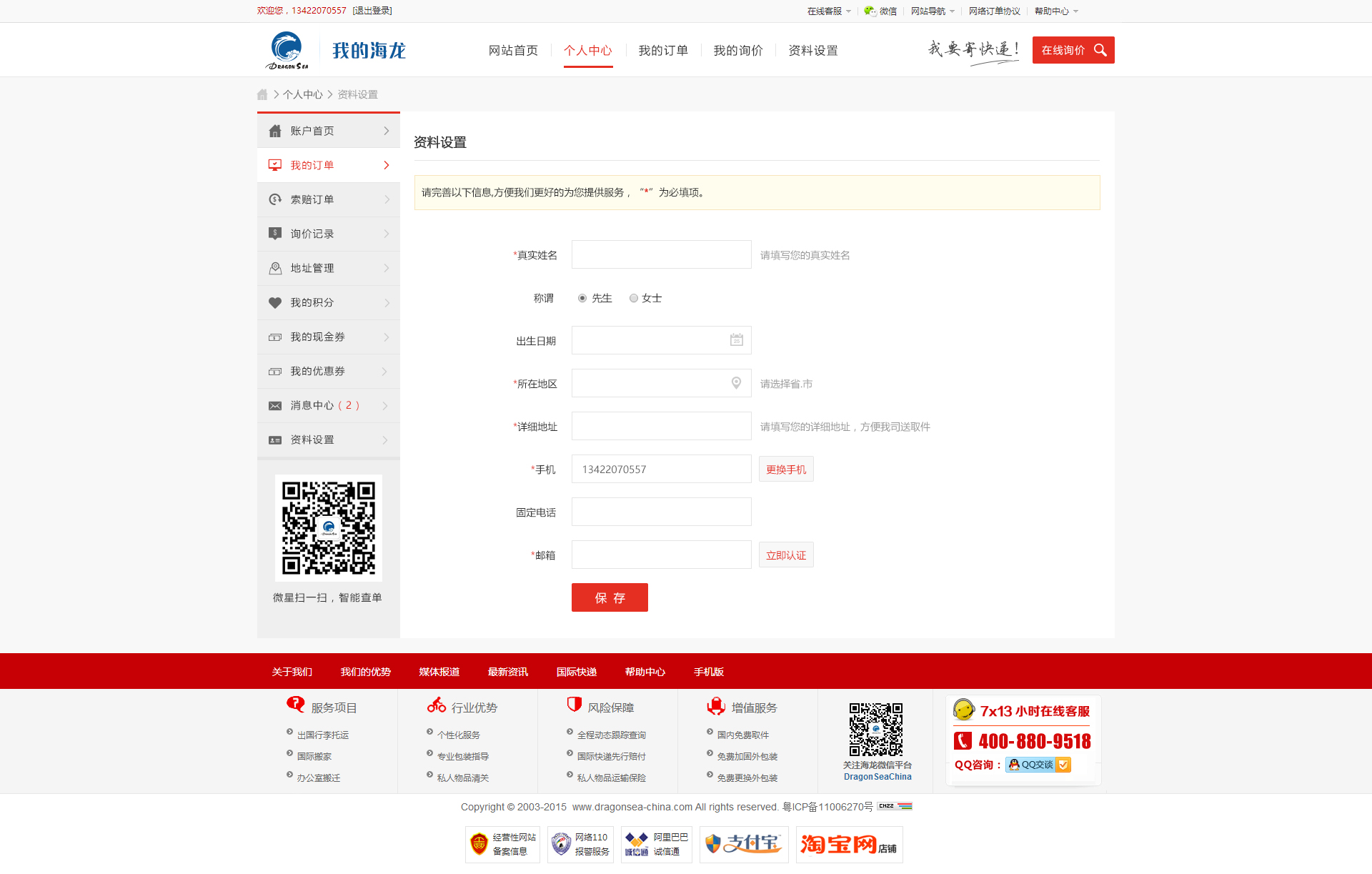 166450 顾客使用海龙国际托运服务